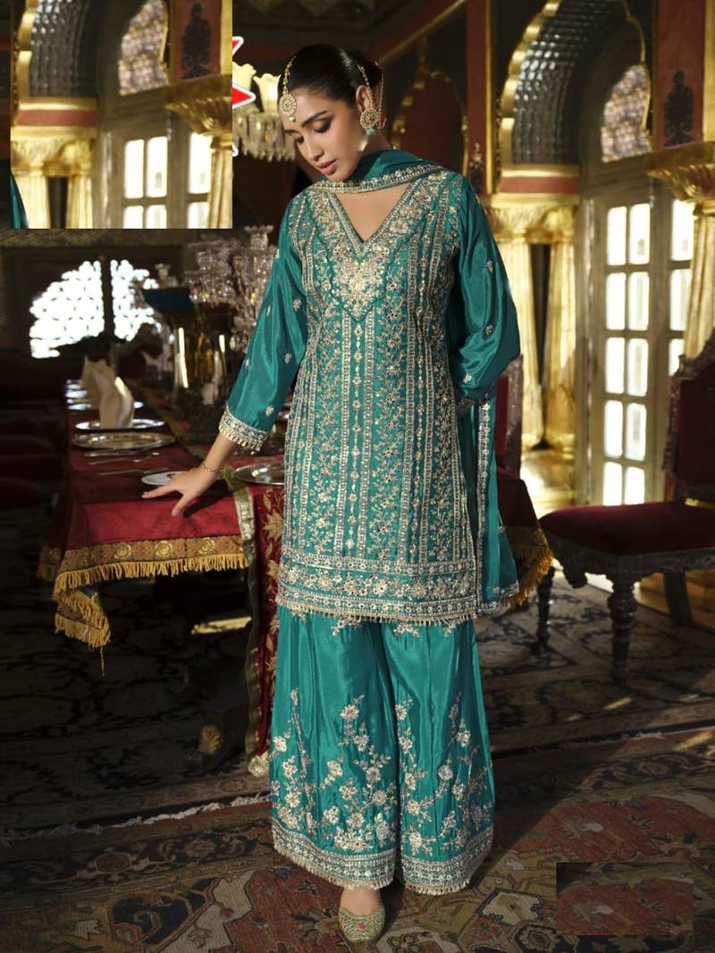 | Product Name | Blue Heavy Chinon Silk Full Stitched Free Size Upto 44 Palazzo Suits | |