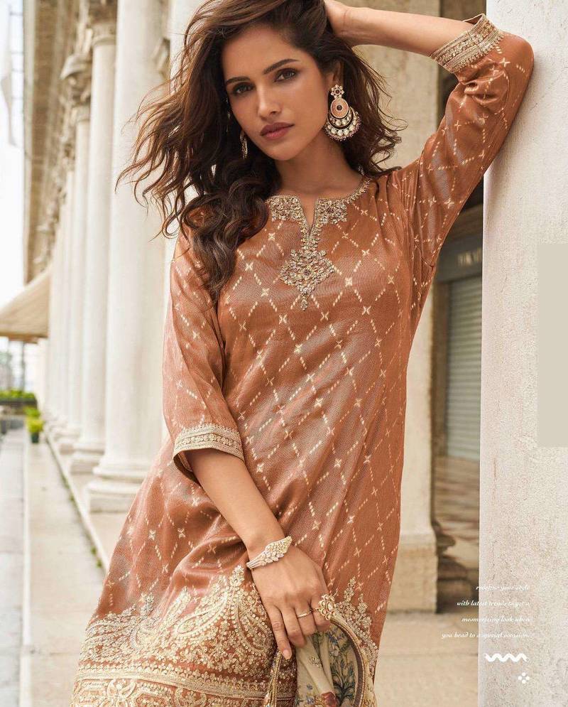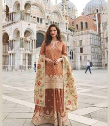 Brown shimmer silk wedding sharara suits free size upto 44 stitched