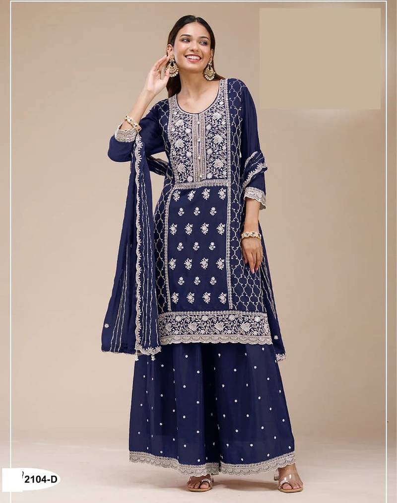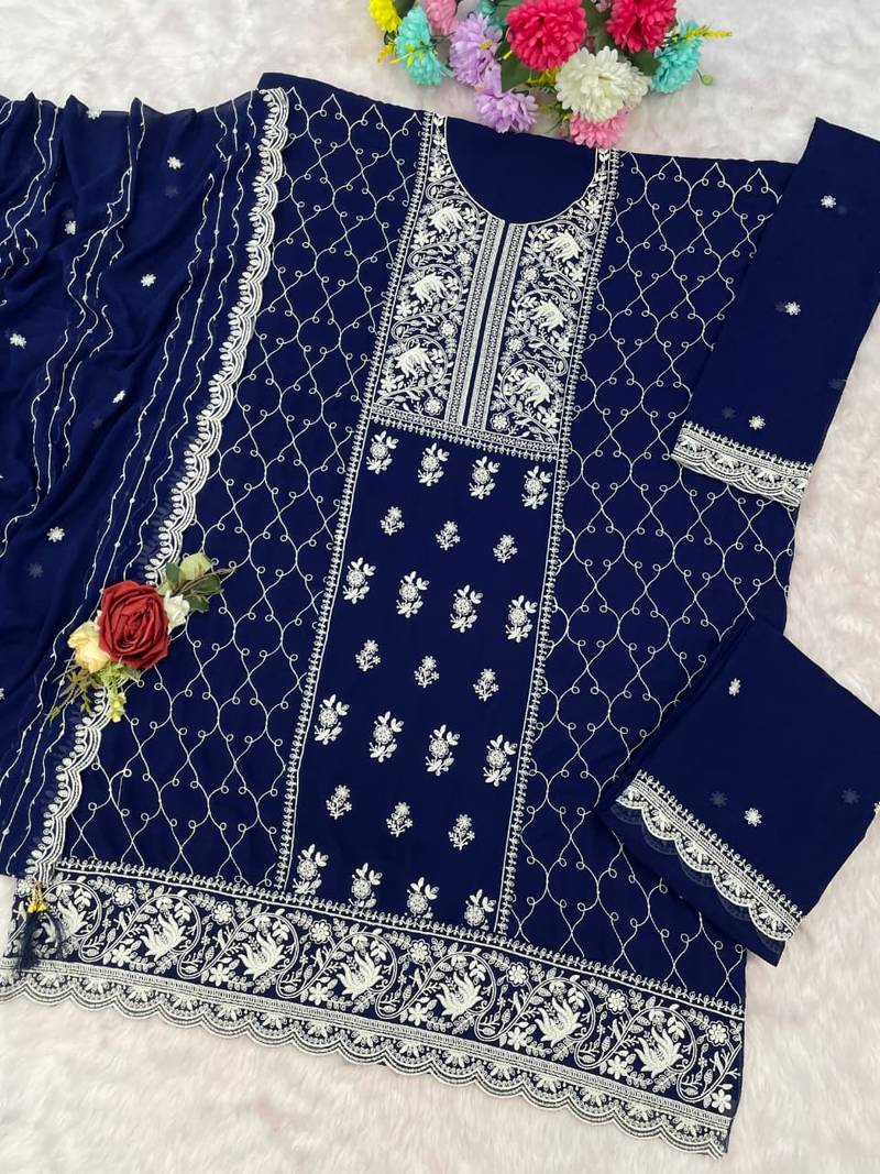 Navy blue green georgette semi stitched wedding suits