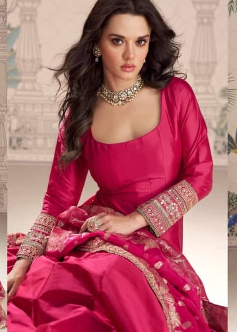 Pink heavy silk anarkali suit - full stitched free size