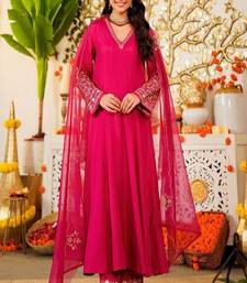 | Product Description | Elevate Your Festive Wardrobe With This Luxurious Floral Embroidered V Neck Silk Kurta, Trouser & Dupatta Set, Crafted For Women Who Appreciate Timeless Elegance And Premium Comfort. Made From High Quality Silk Fabric, This Three Piece Ensemble Offers A Rich Sheen, Smooth Texture, And Graceful Drape That Instantly Enhances Your Ethnic Look. The Kurta Features Intricate Floral Embroidery That Adds A Refined And Sophisticated Charm, While The Flattering V Neck Design Creates A Sleek, Elongating Silhouette. Paired With Coordinated Silk Trousers And A Beautifully Complementing Dupatta, This Set Delivers A Complete, Polished Outfit Perfect For Weddings, Festive Celebrations, Parties, And Special Occasions. Designed To Combine Traditional Artistry With Modern Styling, This Embroidered Silk Suit Set Ensures You Stand Out With Effortless Grace. Style It With Statement Jewelry And Heels For A Stunning, Occasion Ready Ensemble. Premium Silk Fabric: Luxurious Texture With A Natural Sheen And Elegant Drape. Exquisite Floral Embroidery: Detailed Craftsmanship For A Rich, Festive Appeal. Flattering V Neck Design: Modern Neckline That Enhances The Overall Silhouette. Complete 3 Piece Ensemble: Includes Silk Kurta, Matching Trousers, And Dupatta. Ideal For Special Occasions: Perfect For Weddings, Festivals, Parties, And Celebrations. |