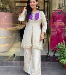 | Product Description | Make A Sophisticated Style Statement With This Floral Embroidered White Kurta Set Featuring A Rich Blue Panel. The Combination Of Delicately Embroidered White Fabric And The Bold, Royal Blue Center Panel Creates A Premium Ethnic Look That Stands Out Effortlessly. The Kurta’s Scalloped Hem, Embellished Neckline, And Detailed Floral Motifs Enhance Its Festive Appeal, While The Wide Leg Trouser Ensures Comfort And A Flattering Flow. Perfect For Women Who Love Subtle Elegance With A Touch Of Vibrant Contrast. Key Features Chic White Kurta With Bold Blue Embroidered Panel Exquisite Floral And Pearl Embroidery For A Luxurious Look Classic Round Neck With Hand Embellished Detailing Front Slit, Flared Kurta Silhouette For A Modern Fit Matching Wide Leg Trouser With Smooth, Glossy Finish Available Sizes: M, L, Xl, Xxl Perfect For Festivals, Engagement Parties, Family Functions, Evening Events, And Traditional Celebrations. |