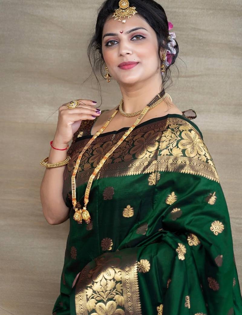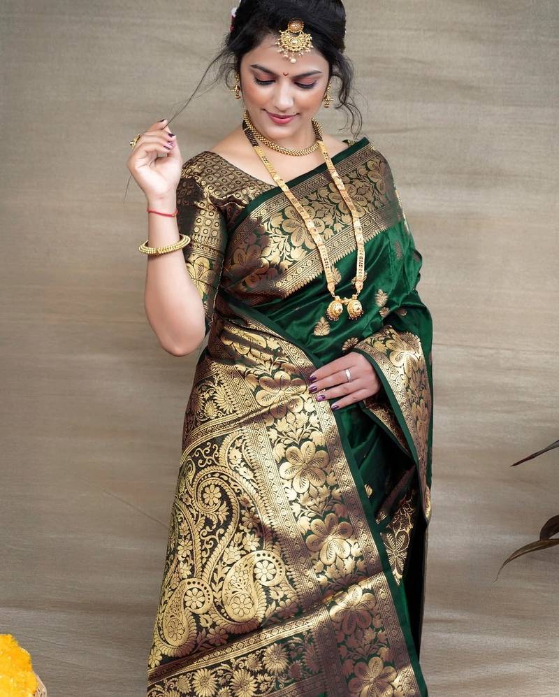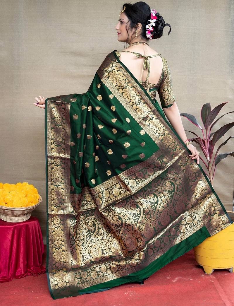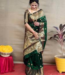 Green soft art silk banarasi jacuard work designer party wear saree with unstitched blouse piece