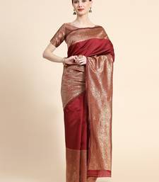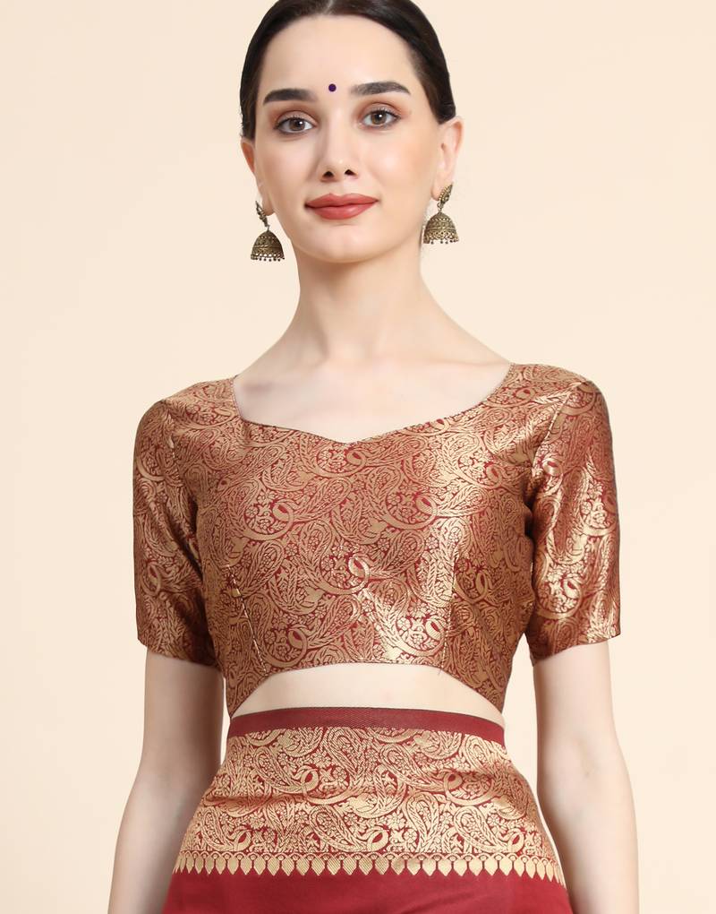 Maroon soft art silk banarasi jacuard work designer party wear saree with unstitched blouse piece