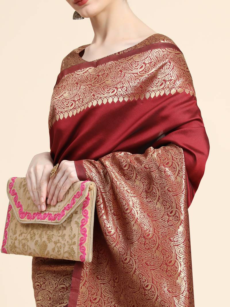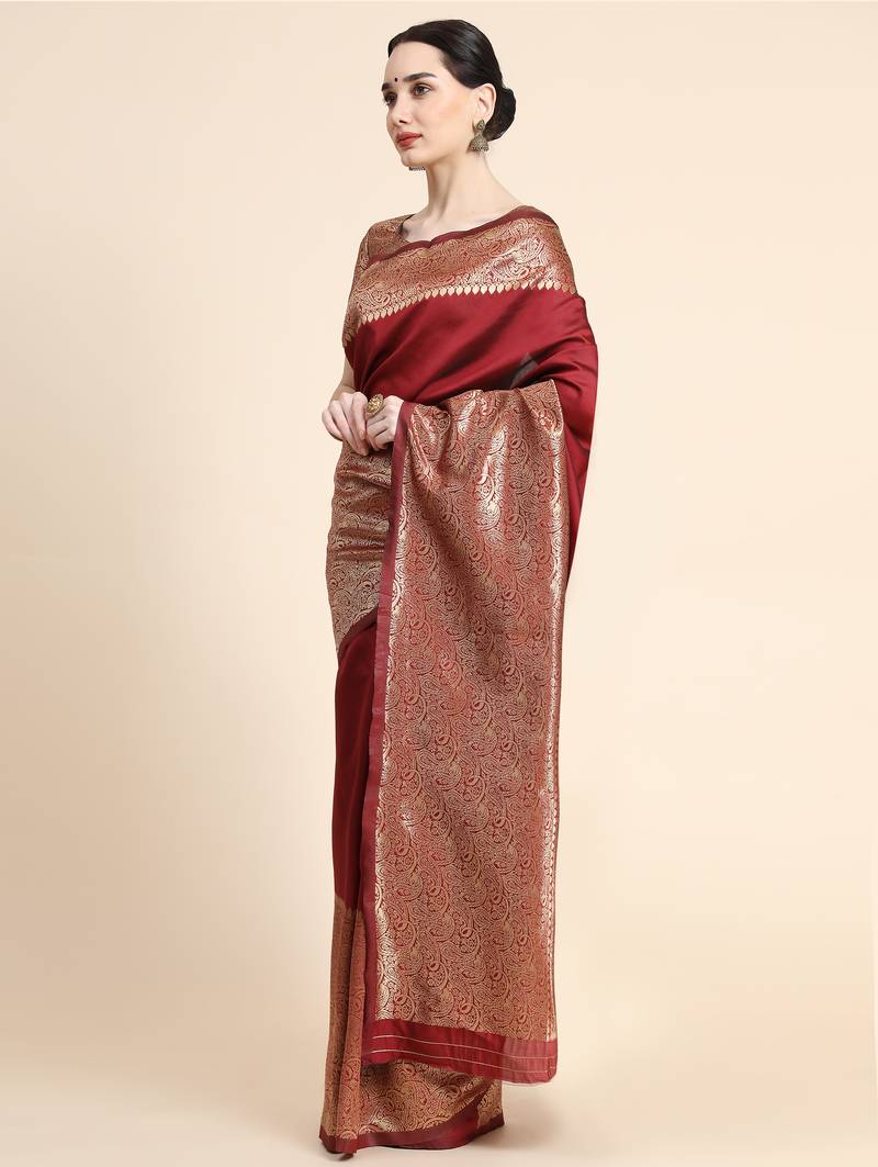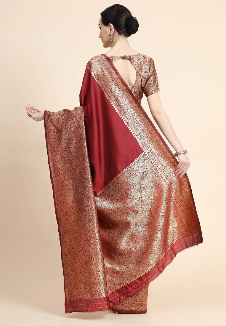 | Product Name | Maroon Soft Art Silk Banarasi Jacuard Work Designer Party Wear Saree With Unstitched Blouse Piece | |