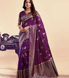 Purple soft silk blend banarasi jacuard work designer party wear saree with unstitched blouse piece