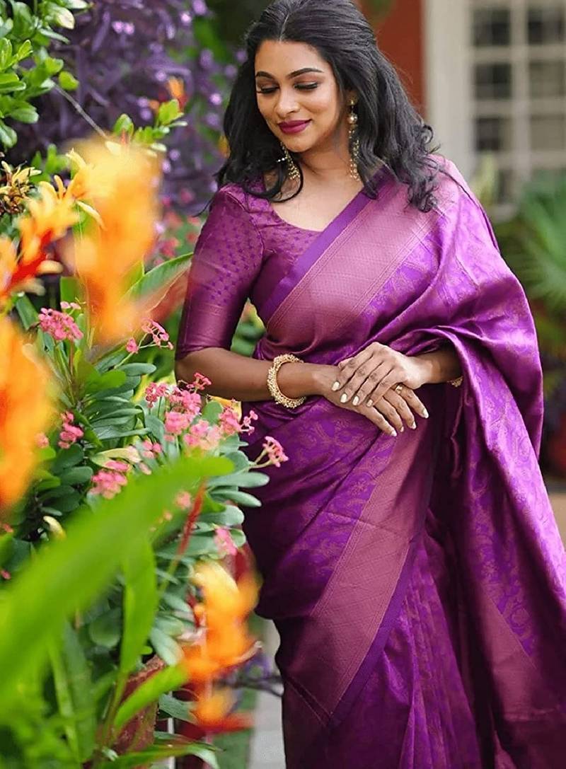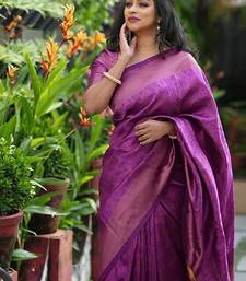 Purple soft art silk banarasi jacuard work designer party wear saree with unstitched blouse piece