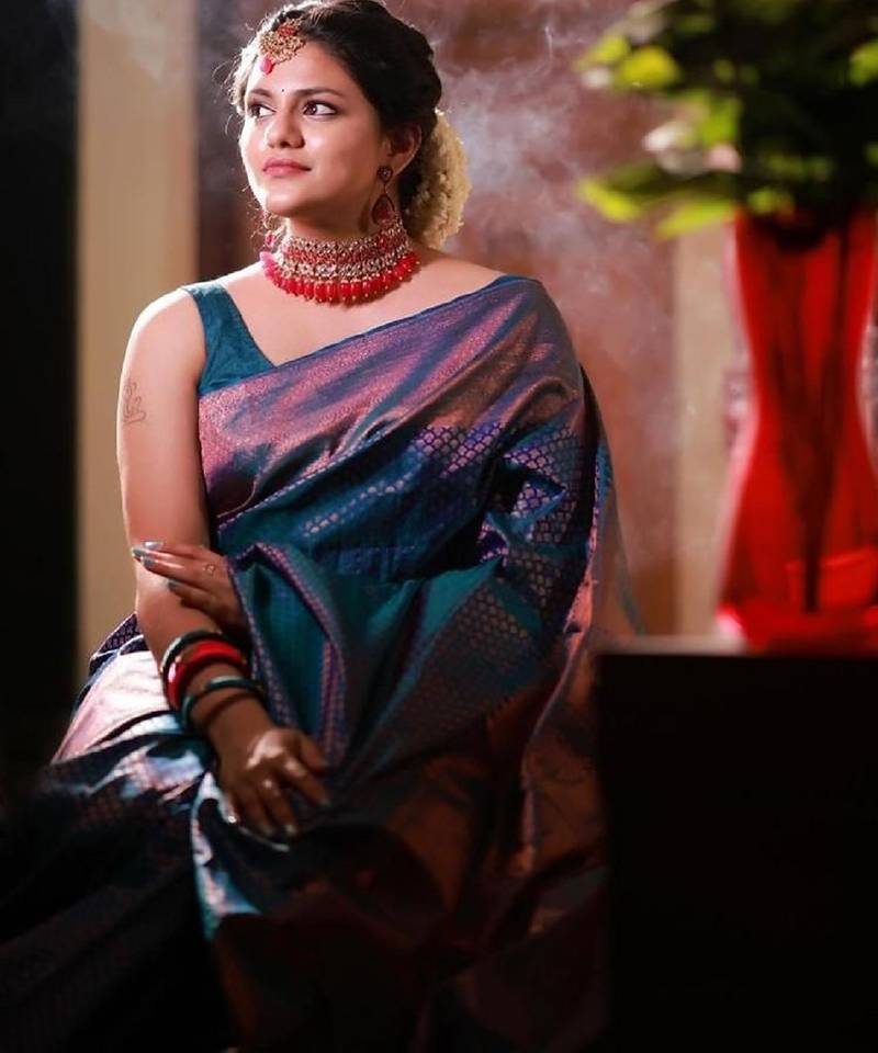 Rema soft art silk banarasi jacuard work designer party wear saree with unstitched blouse piece