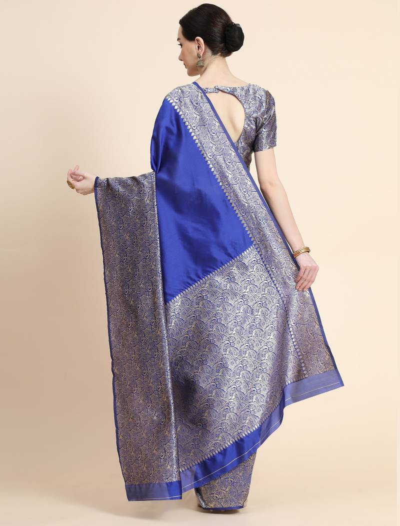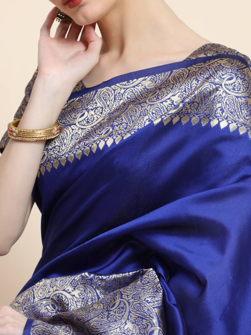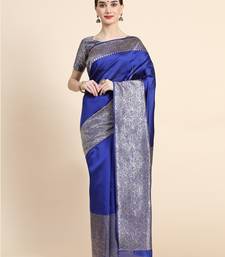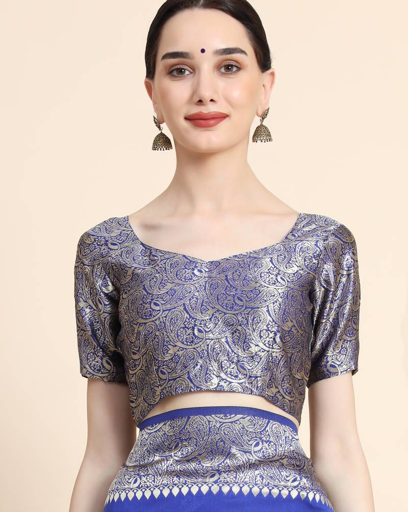 Royal blue soft art silk banarasi jacuard work designer party wear saree with unstitched blouse piece