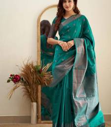 Teal green soft art silk banarasi jacuard work designer party wear saree with unstitched blouse piece