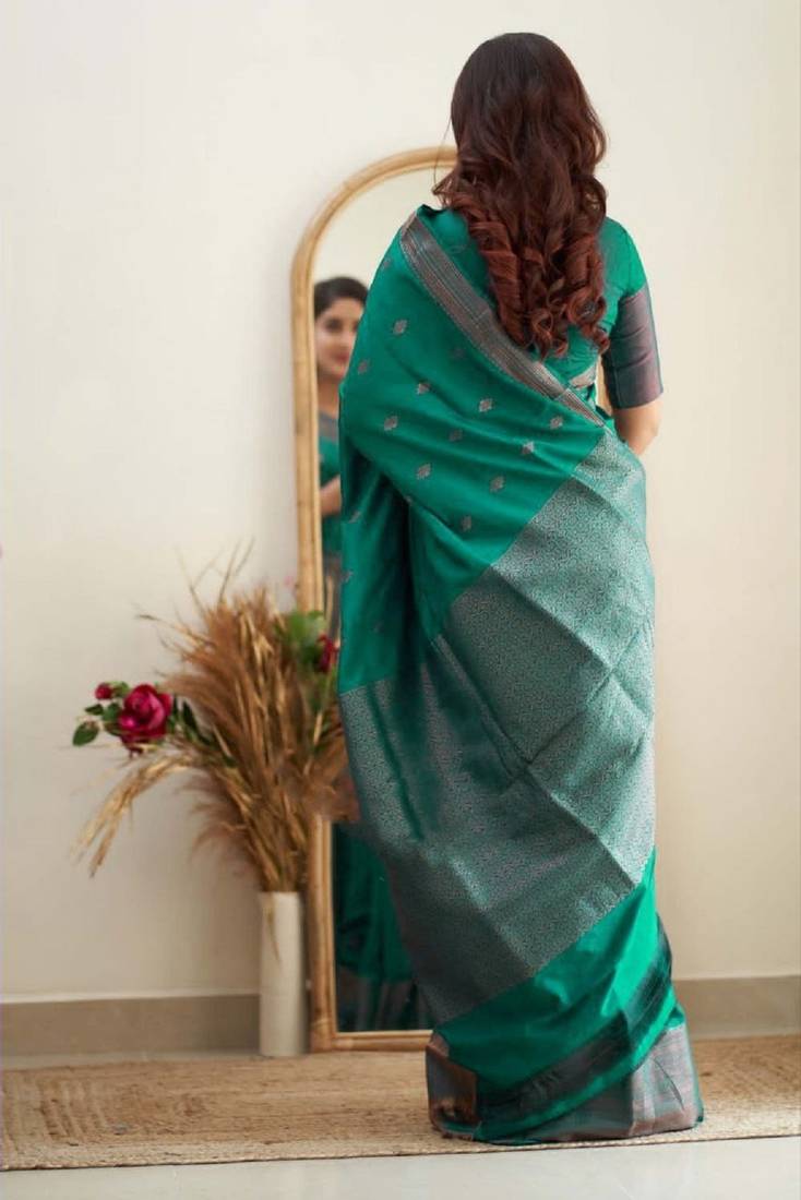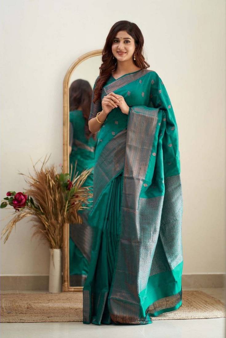 | Product Name | Teal Green Soft Art Silk Banarasi Jacuard Work Designer Party Wear Saree With Unstitched Blouse Piece | |