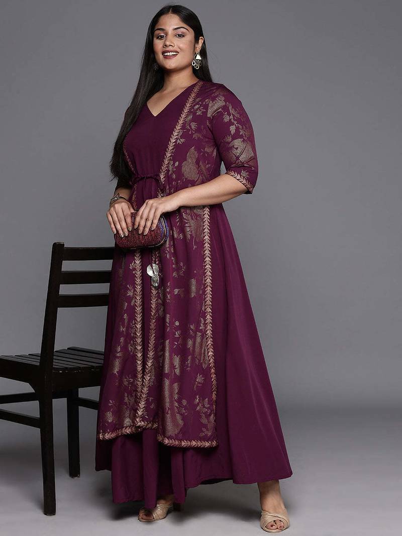 Product Name Burgundy Printed Crepe Ethnic Dresses