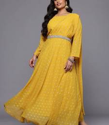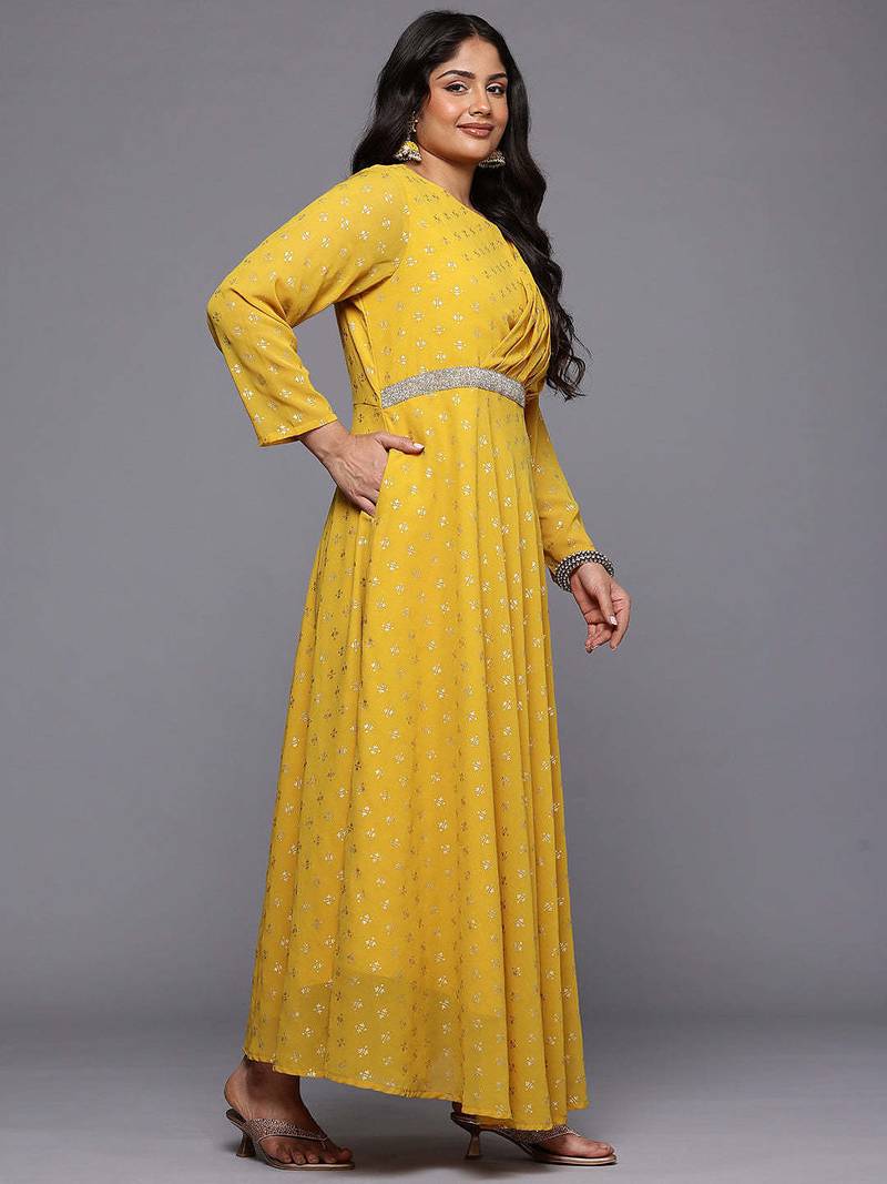 Product Name Mustard Printed Georgette Ethnic Dresses
