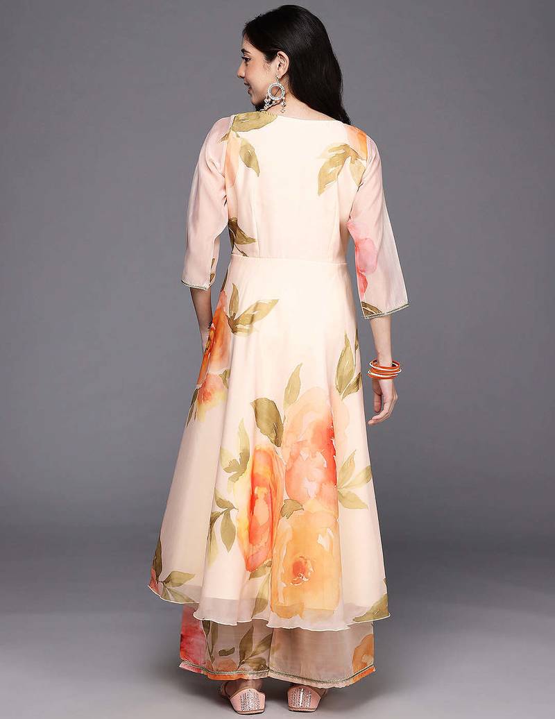 Off white printed organza kurta sets