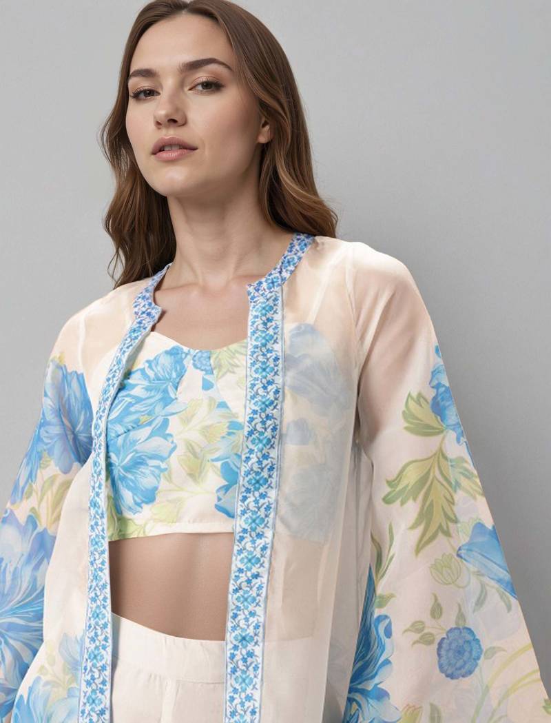 Off white printed polyester co ord set
