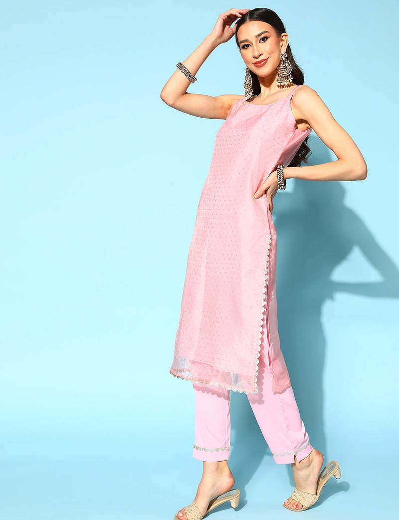 Pastel pink printed organza kurta sets