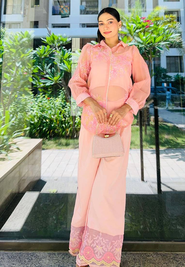 | Product Name | Pastel Pink Printed Polyester Co Ord Set | |