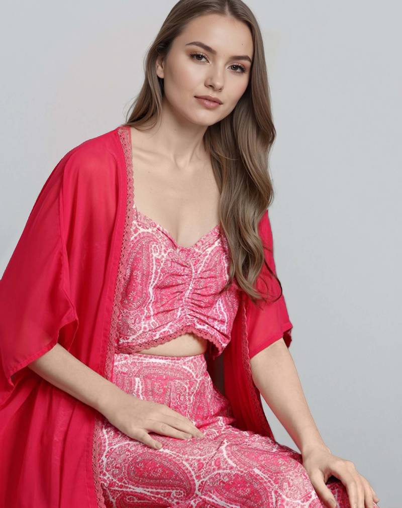 Product Name Pink Printed Polyester Co Ord Set