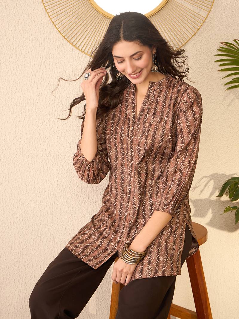 | Product Name | Women Brown Cotton Blend Ethnic Motifs Printed Regular Top | |