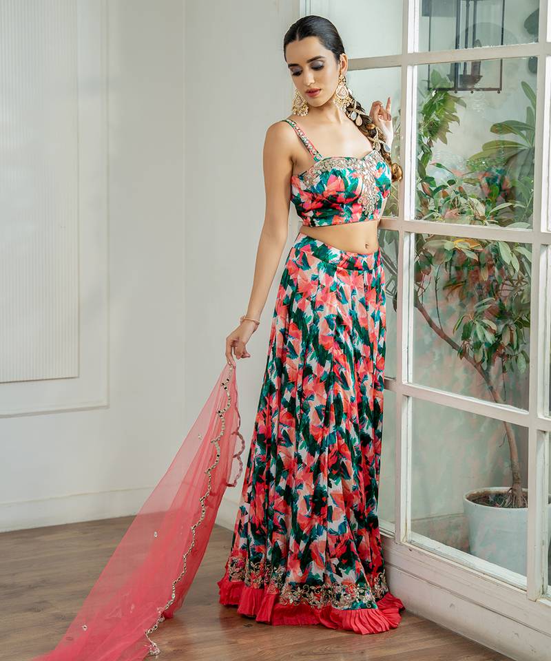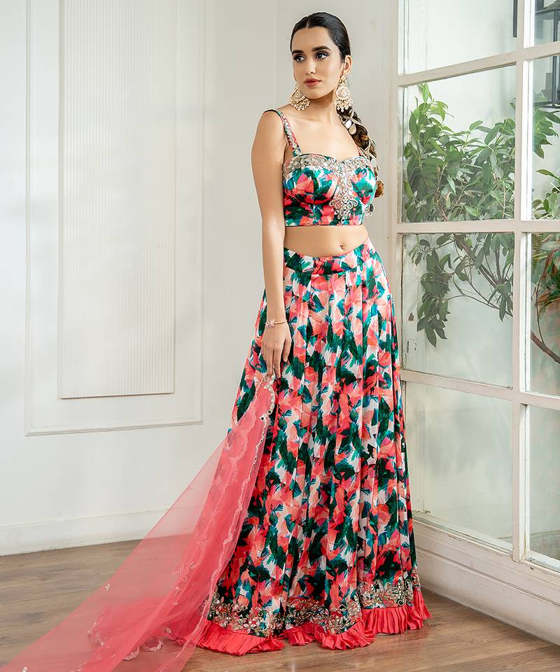 | Product Description | This Multicolor Printed Georgette Lehenga Set Features Vibrant Hues And A Flowy Silhouette That Blends Festive Charm With Modern Elegance. The Lightweight Fabric Ensures Comfort, While The Coordinated Blouse And Dupatta Complete The Look. Perfect For Weddings, Sangeet Nights, And Celebrations, It Adds Effortless Grace To Any Special Occasion.