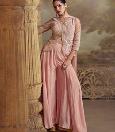 Baby pink georgette readymade suit with embroidery work - full stitched free size