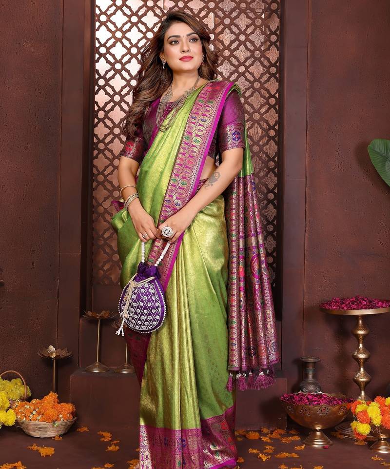 Purple banarasi tissue art silk saree