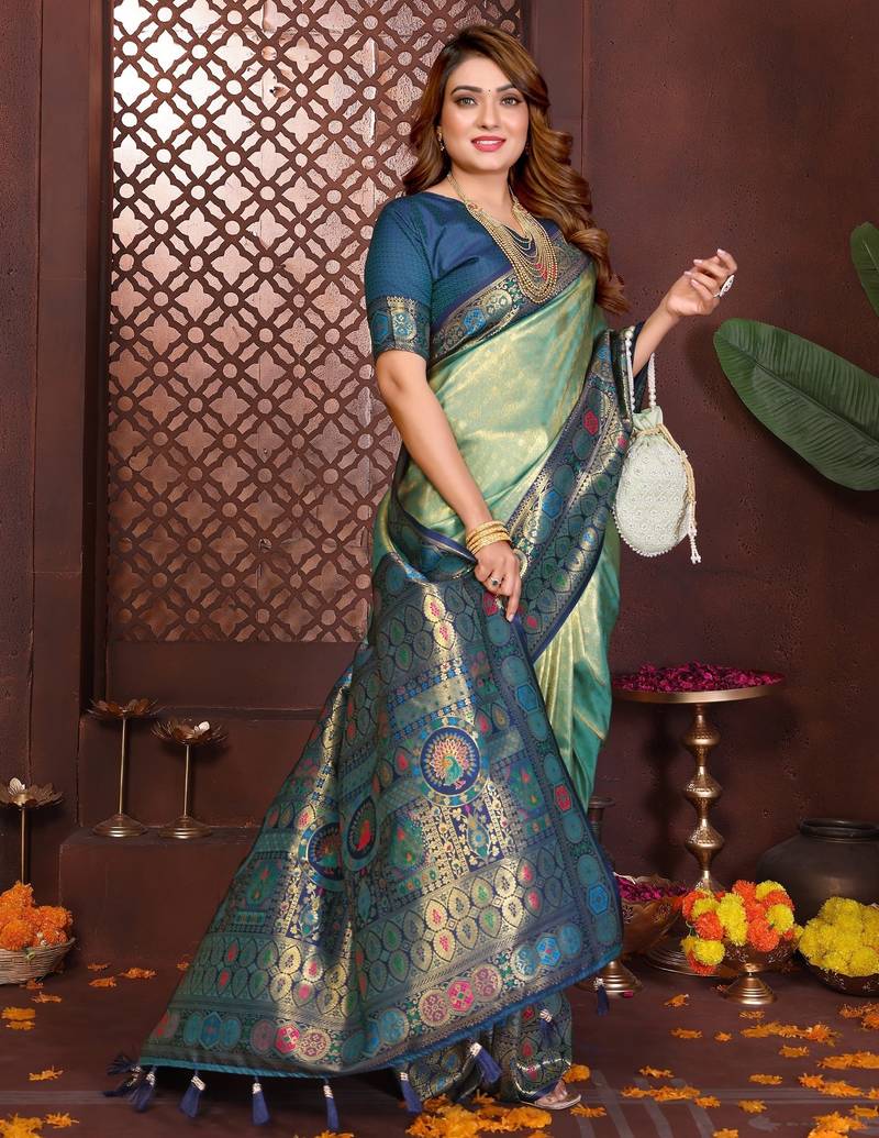 SkyBlue banarasi tissue art silk saree