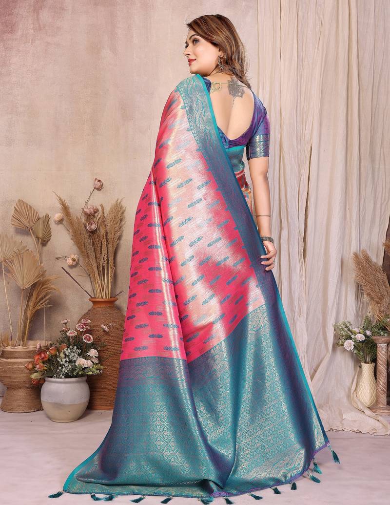 Pink banarasi tissue art silk saree