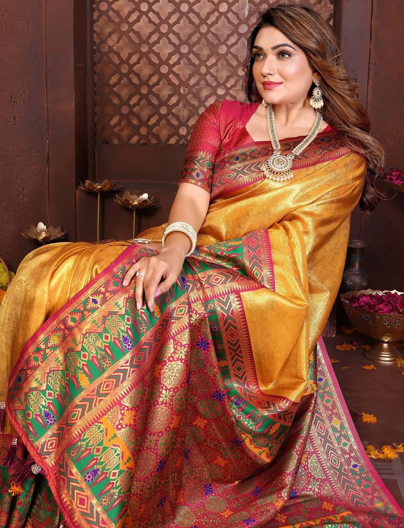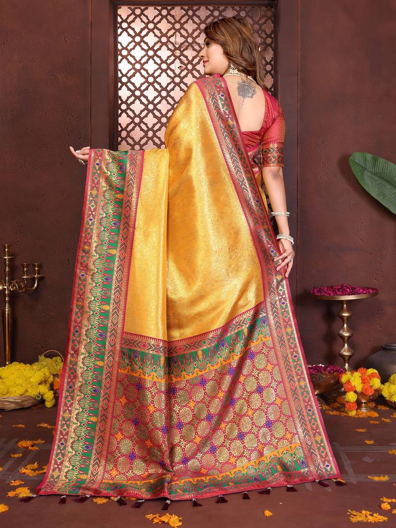 Yellow banarasi tissue art silk saree