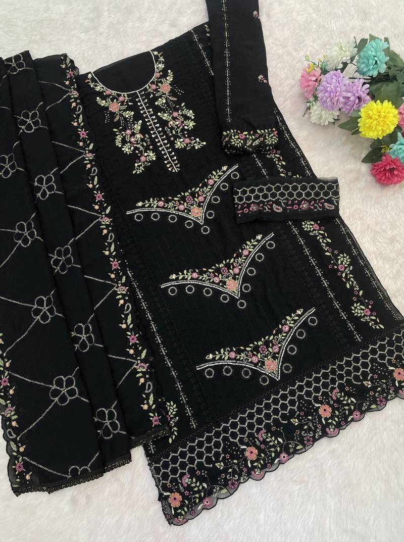 Black fox georgette semi stiutched suit with embroidery sequenc & khatli work semi stitched