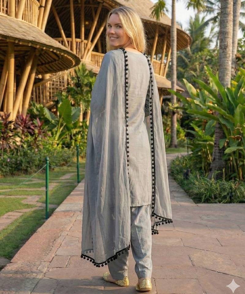| • | Kameez | : | Color- Grey / Fabric- Crepe |
