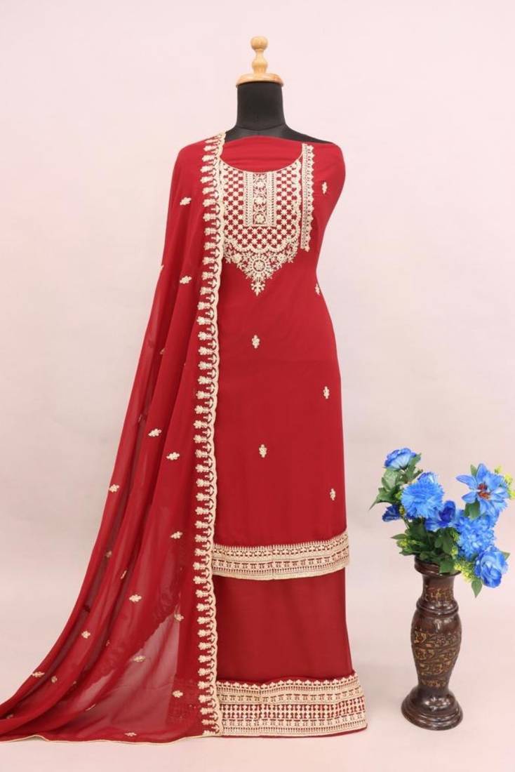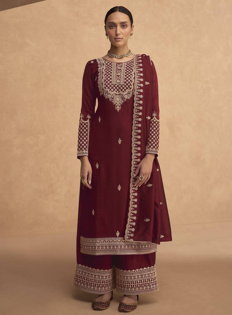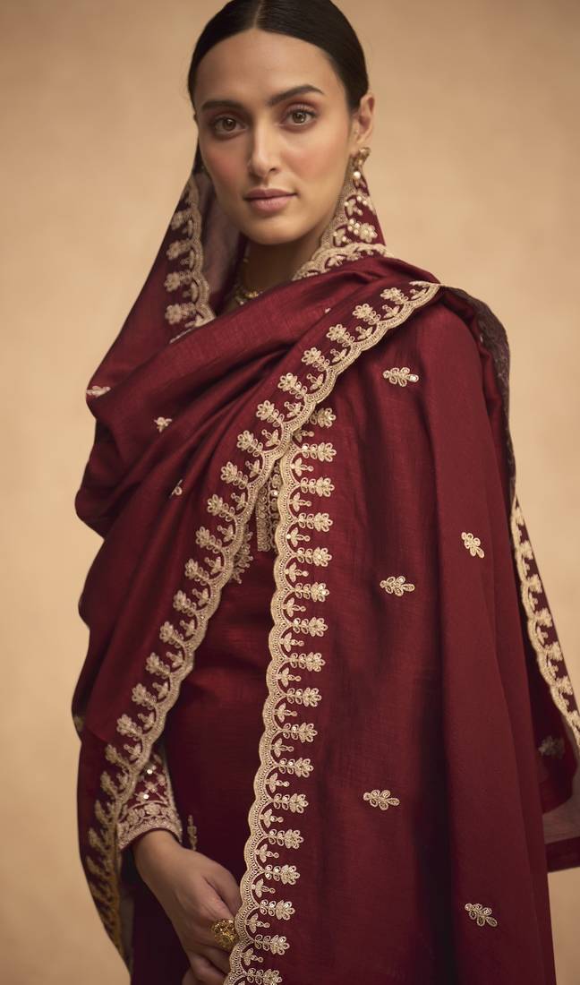 | Product Name | Maroon Embroderied Silk Semi Stitched Plazzo Suit | |