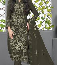 Mehendi fox georgette semi stiutched suit with embroidery sequence work semi stitched