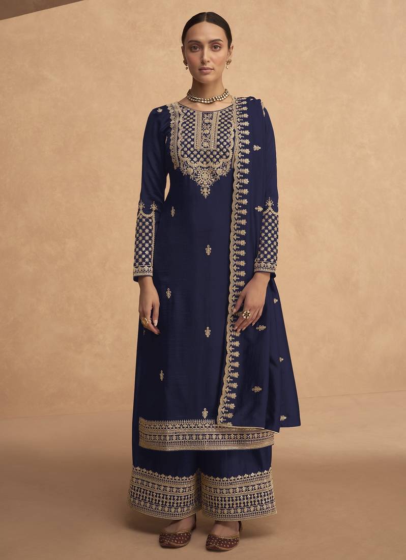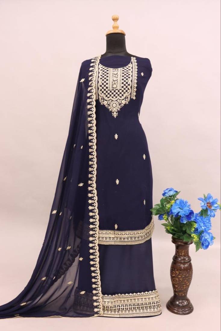 Product Name Navy Blue Embroderied Silk Palazzo Suit