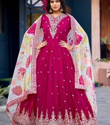 Pink embroidered georgette stitched anarkali suit with dupatta
