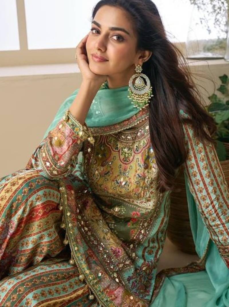 Product Name | Sea Green Heavy Crepe Silk Sharara Suit | |