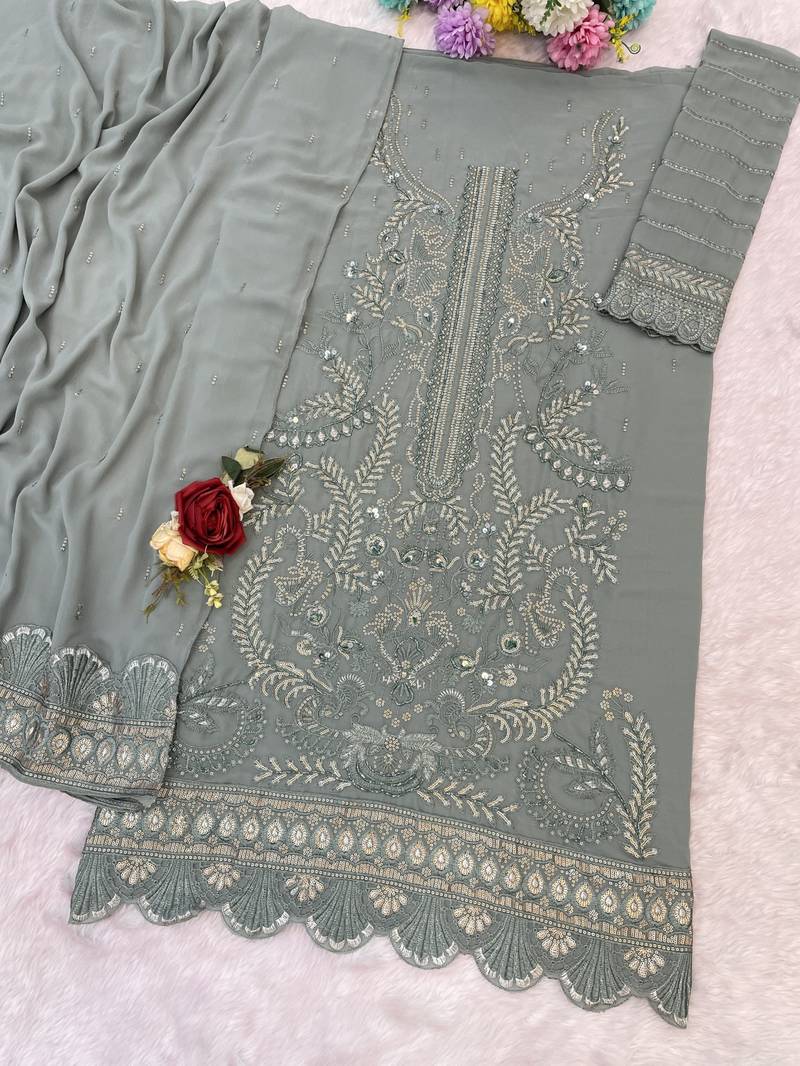 Sky blue fox georgette semi stiutched suit with embroidery sequenc & khatli work semi stitched