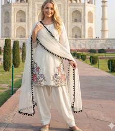 White crepe suit with sequin embroidery work stitched