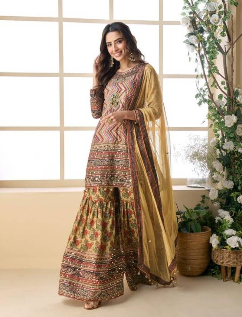 Product Name | Yellow Heavy Crepe Silk Sharara Suit | |