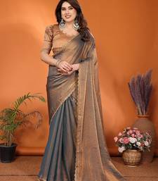 Grey elegant embellished chiffon saree with frendi chinese border & blouse piece