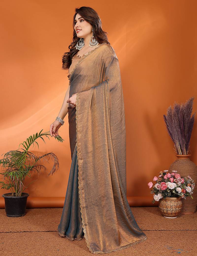 | Product Description | Elevate Your Festive Style With This Women’s Elegant Embellished Chiffon Saree, Crafted From Lightweight, Flowy Chiffon That Drapes Beautifully And Ensures All Day Comfort. Delicate Embellishments Add A Subtle Shimmer, Making It Perfect For Parties, Weddings, And Special Occasions. Finished With An Exquisite Frendi Chinese Lace Border, This Saree Offers A Rich, Designer Touch For A Graceful And Sophisticated Look. |
