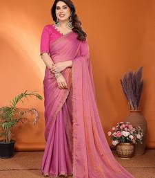 Pink elegant embellished chiffon saree with frendi chinese border & blouse piece