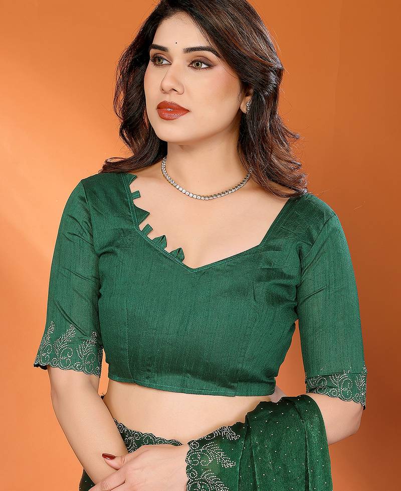 | Product Name | Green Elegant Embellished Jimmy Saree With Frendi Diamond Border & Blouse Piece | |
