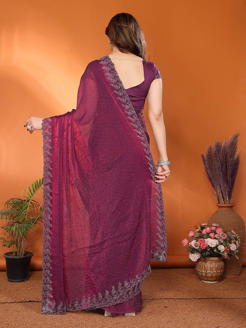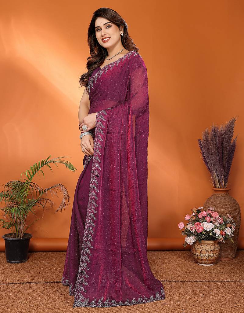 Product Name Magenta Elegant Embellished Jimmy Saree With Frendi Diamond Border & Blouse Piece