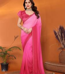 Pink elegant solid georgette saree with lace border & blouse piece