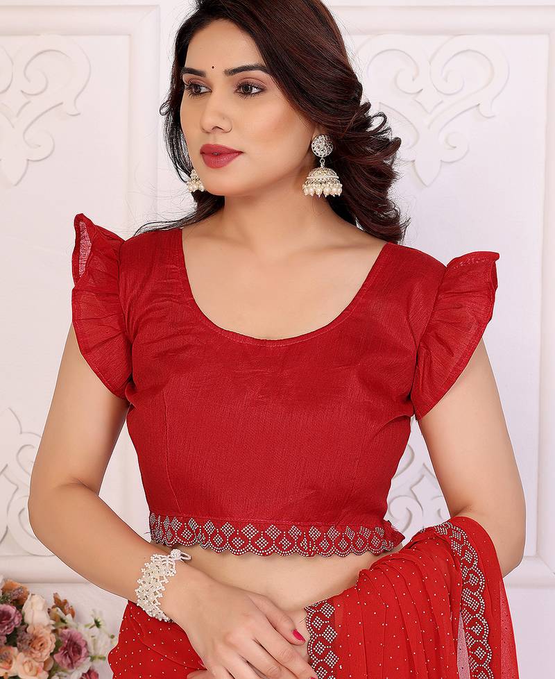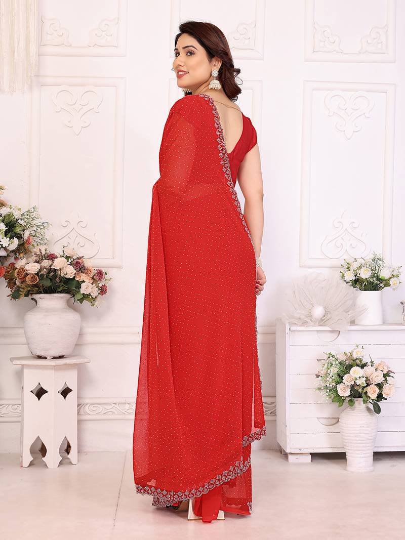 | Product Name | Red Embellished Chiffon Saree With Diamond Lace Border – Wedding & Party Wear | |
