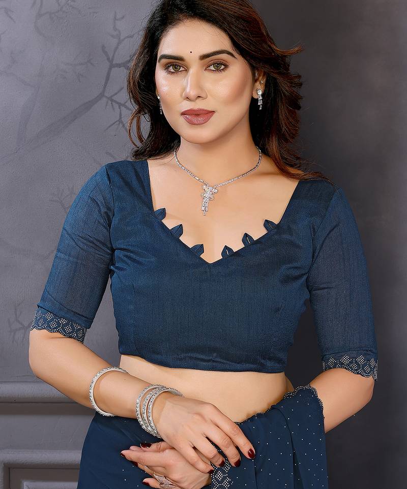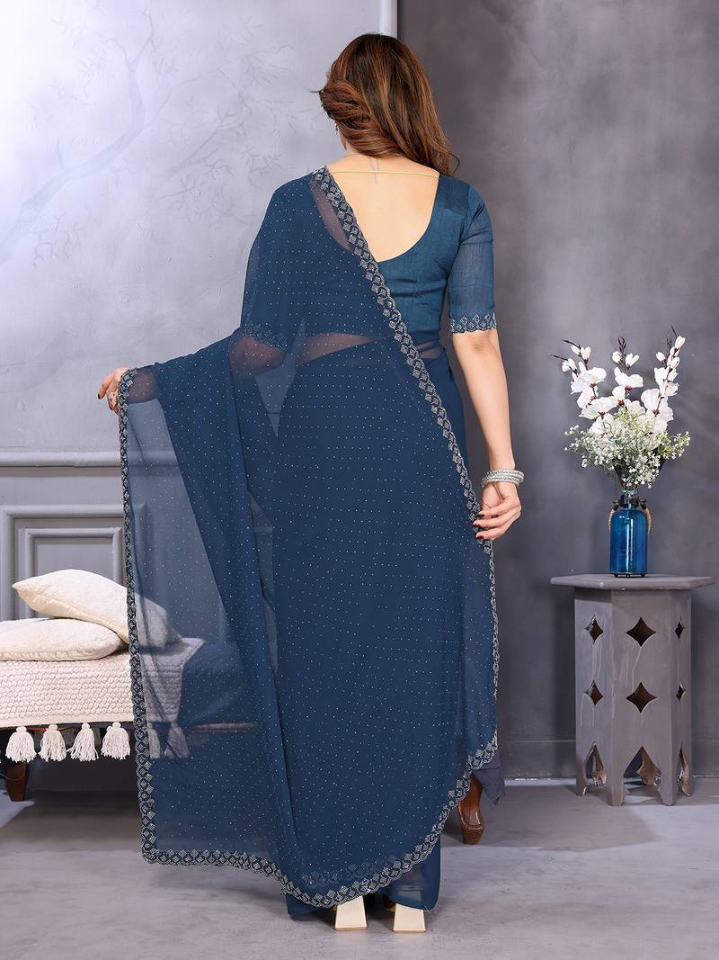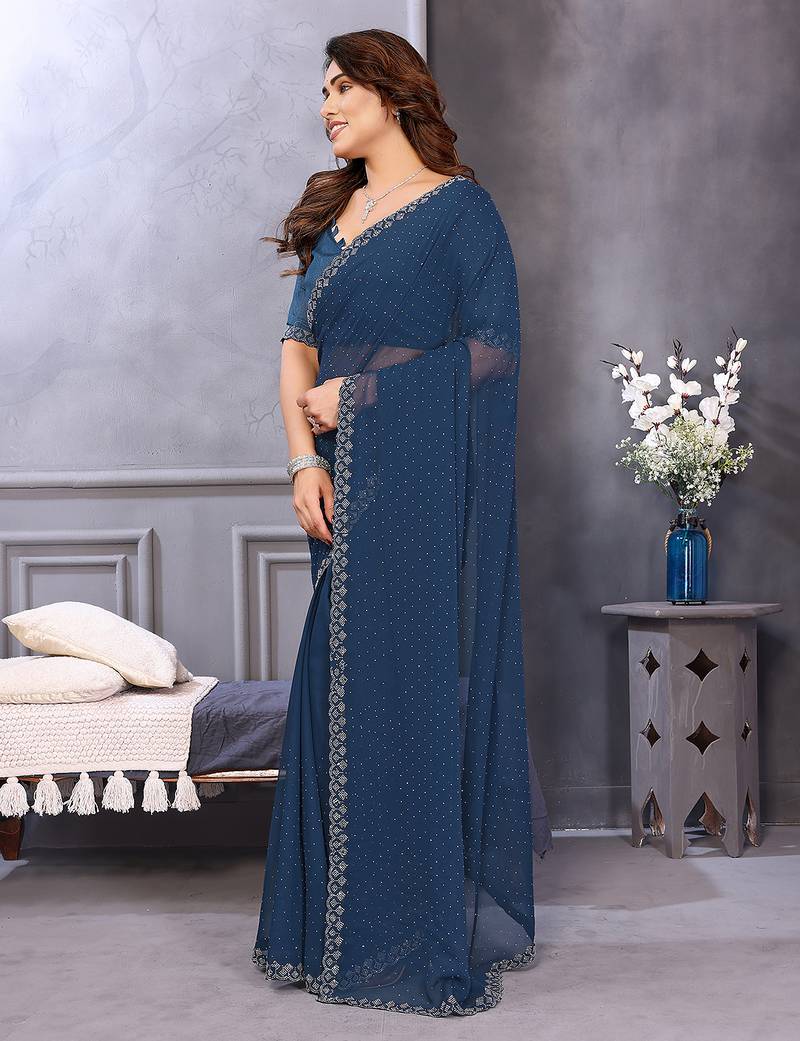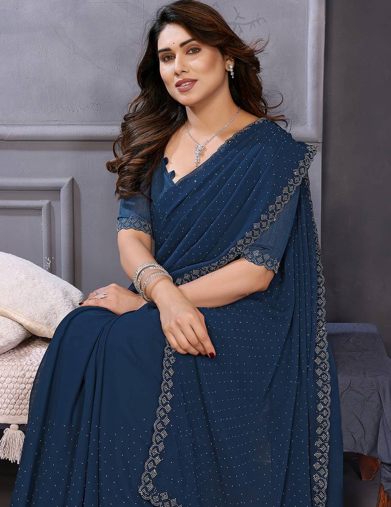 | Product Name | Blue Embellished Chiffon Saree With Diamond Lace Border – Wedding & Party Wear | |