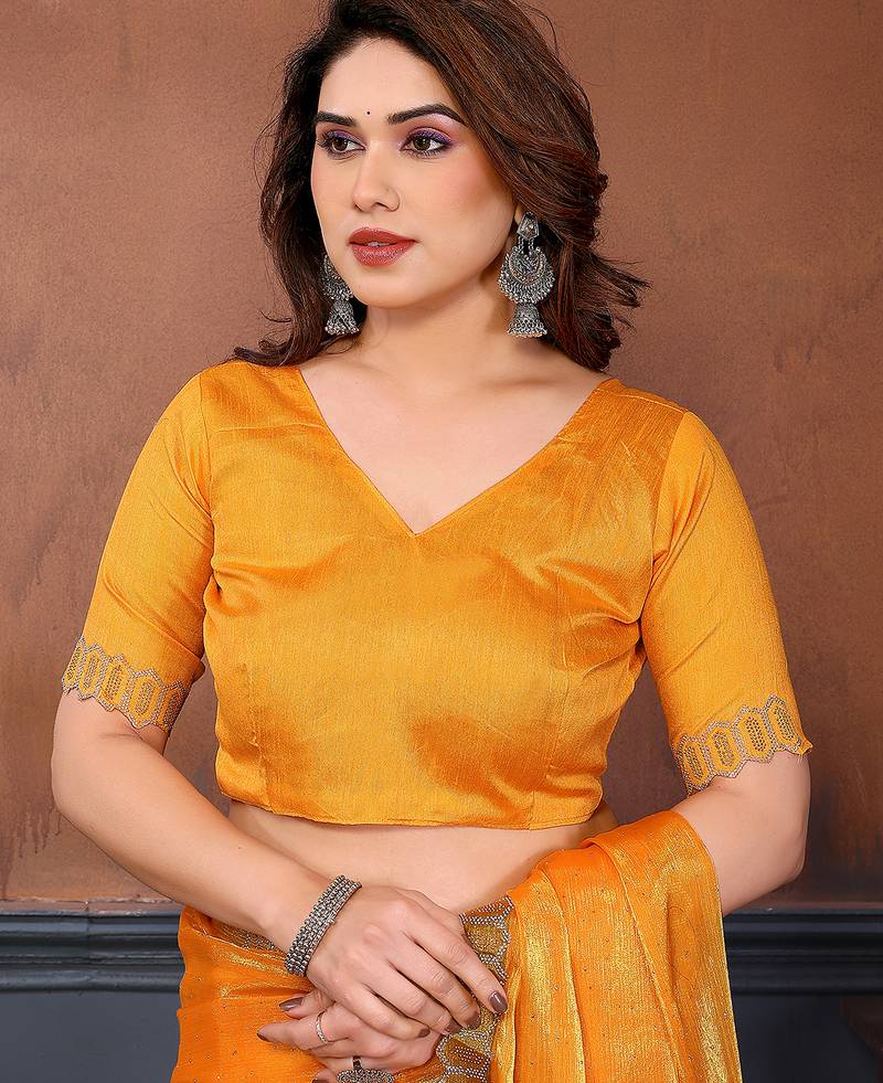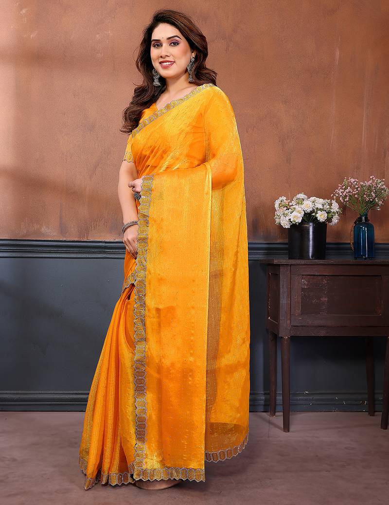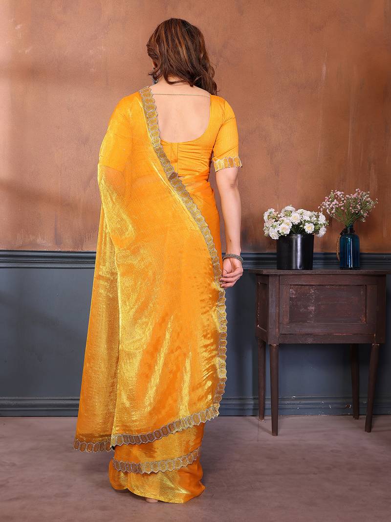 Product Name  Yellow Embellished Jimmy Choo Lace Border Saree With Blouse Piece For Wedding Wear