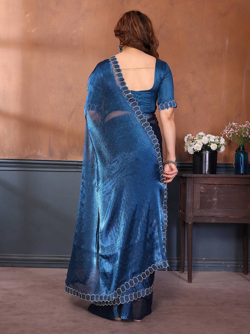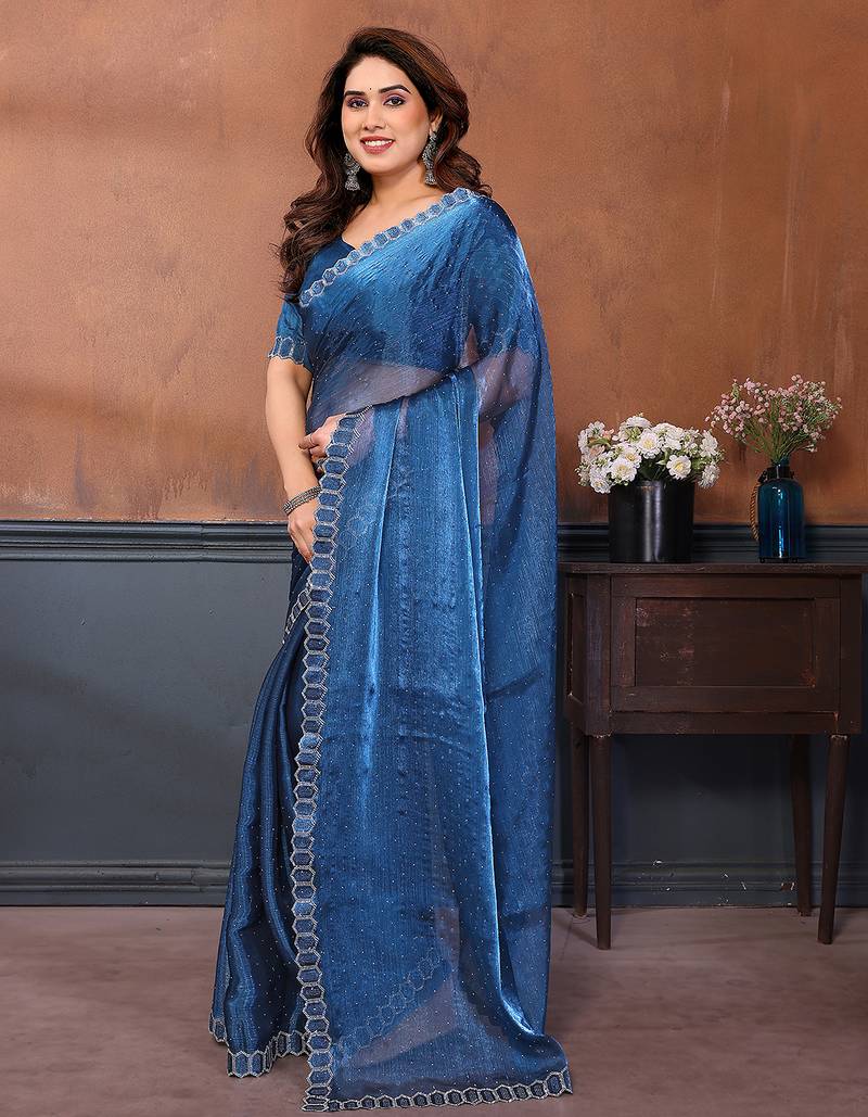 | Product Name | Blue Embellished Jimmy Choo Lace Border Saree With Blouse Piece For Wedding Wear | |