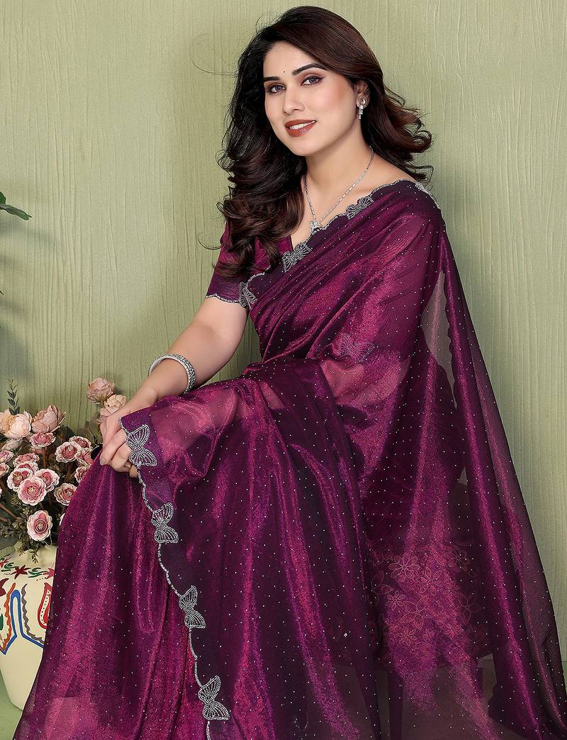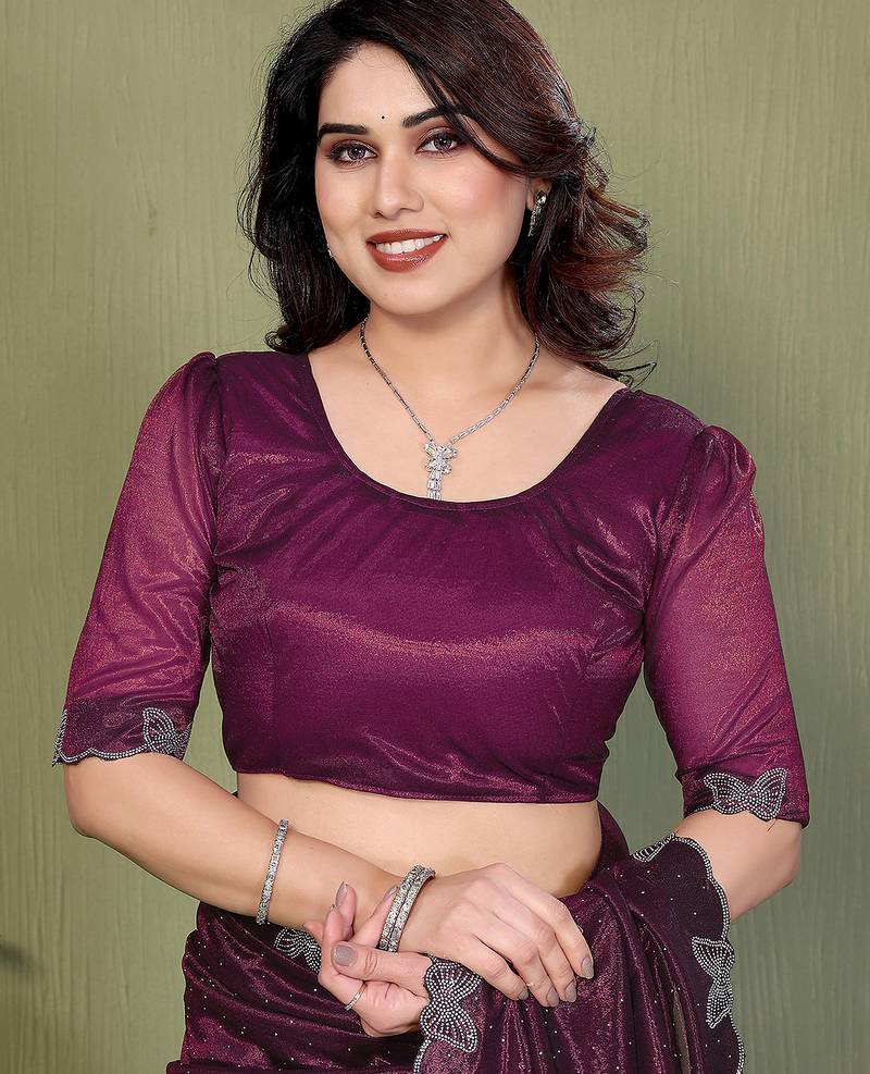 | Product Name | Purple Embellished Net Saree With Butterfly Diamond Lace Border & Blouse Piece | |